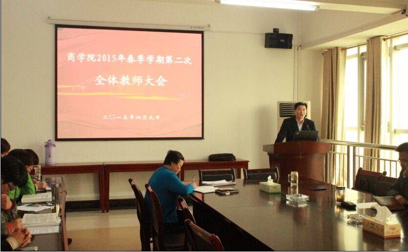 会上,院长助理周业旺博士传达了学校教学工作会议精神,组织学习了《黄冈师范学院教学制度》相关内容,强调加强师德师风建设,严明教学纪律。周博士对下一阶段教学工作作了布置,动员教师积极申报教研、学科竞赛等项目。副书记余晚霞就学生工作进行了阶段总结,对后期工作作了具体安排,指出当前要严把春游关,严格遵守学校相关规定,做好安全稳定工作;各毕业班做好专业实习、就业及考研学生相关工作;临近期中考试,要加大课堂考勤力度,加强考风考纪教育。陈蕾博士就赴武汉参加“微课、慕课、翻转课堂”培训向全体教师作了演示汇报。工会主席管中柱对黄冈市遗爱湖公园举行健步走活动、春季学校学院举行的各种户外活动及比赛进行了布置和安排。