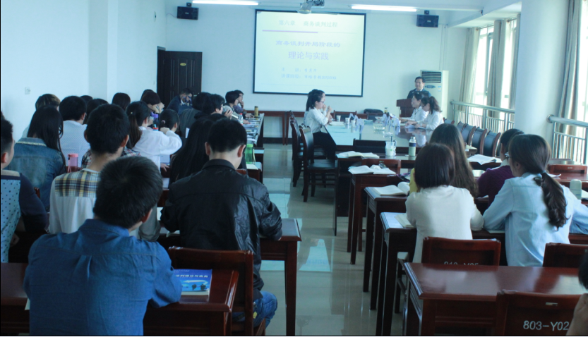 李月华教授今天讲授的是《商务谈判》课程中的“商务谈判开局阶段的理论与实践”。李教授对教学过程进行了精心设计,首先向学生介绍了商务谈判开局阶段的理论知识和要点,然后,举出一个实际商务案例,通过情景模拟和角色扮演法,现场指导学生进行商务谈判,取得了很好的教学效果。李教授注重对学生基本技能的培养,在教学过程中,他采取了任务驱动的教学模式,运用多媒体教学法、案例分析法、情景模拟法,角色扮演法,融教学做于一体,为学生提供了体验实践的情境,学生围绕任务展开实践训练,最后,以任务的完成结果来检验知识和技能的掌握效果。