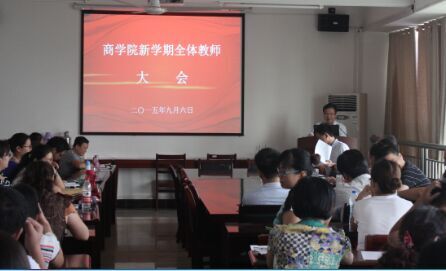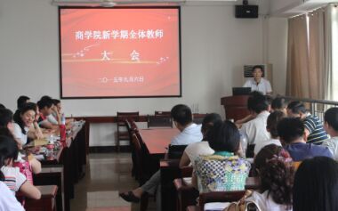 2015年9月6日下午2点30分至5点20分,在bwin中国官网704#会议室隆重召开bwin中国官网新学期全院教师大会。大会由院党总支书记李月华主持,参会的有学院领导班子成员和全体教职工。