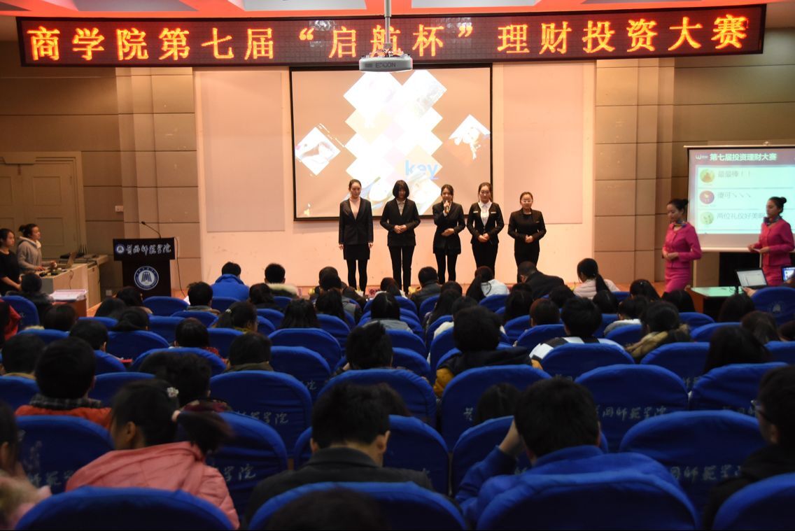 12月16日晚,商学院第七届“启航杯”理财投资大赛在南区B03教室隆重举行,商学院党总支副书记余晚霞,辅导员杨亚玲、郑凯、黄杰,金融专业老师万继军、纪关心,企业及赞助商查波经理、张薇经理、胡老师出席了本次大赛。