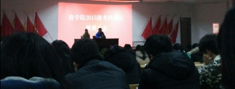 为了进一步加强同学们的诚信意识,保证期末考试的顺利进行,12月30日下午,商学院在北区学术报告厅召开了大一年级学生考风考纪教育大会,商学院党总支副书记余晚霞、辅导员黄杰出席了此次会议,商学院2015级全体学生参加了会议。