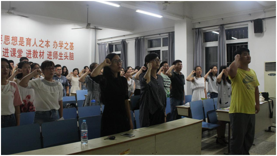 9月14日晚,bwin中国官网学生党支部全体党员于博学楼104室举行本学期“三会一课”及九月支部主题党日活动。bwin中国官网党总支副书记余晚霞、辅导员程惠以及学生党支部73名党员参加此次活动。