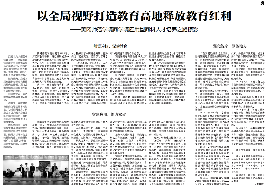 我们相信,新时代,黄冈师院商学院必将书写出更加辉煌的新篇章。(王丽英)