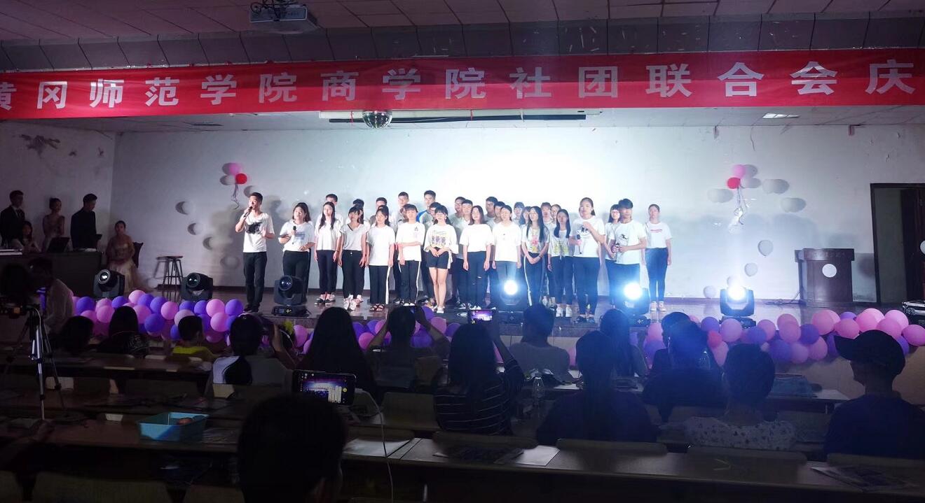 晚会由赵威,殷瑞阳,陈梦情,肖雨薇四位同学主持。首先TOP街舞社以一场炫酷的《EIEI》的街舞表演开场,拉开了活动帷幕,赢得了观众的一片欢呼。然后大家共同观看了记录四大社团一年来的成长历程VCR,各社团节目陆续开始登场。第一个节目是由ACG集英社给我们带来的《cosplay》走秀,让动漫迷大饱眼福。紧接着民谣乐队带来《关于郑州的记忆》,观众们都静静地聆听这首民谣。接着贺小津和化工学院带来舞蹈《风筝误》,纯真中国风,彰显中华文化。然后,聆想话剧社带来小品《你的模样》。整个节目精彩纷呈,尤其是纵横棍社带来武术《双截棍》表演,惊艳全场,赢得了现场的一片欢呼。表演期间,主持人还穿插互动小游戏“抱团”,现场观众也都积极参与其中。另有微信上墙活动,抽取幸运观众,发放礼物。互动环节结束后,商学院舞蹈队带来的舞蹈《BOOM BOOM》,再次点燃了现场气氛,欢快的音乐,让人忍不住跟随跳动。而后精彩的魔术、双人合唱、和服舞、架子鼓独奏、诗朗诵《我的墓碑》等等节目都各自展现了青春活力,为现场观众呈现了一场视听盛宴。能文能舞,亦动亦静,各社团虽然风格迥异,却都展现了黄师学子的精神风貌。最后,节目在大学生创业实践联盟,爱心社,金融协会,经济论坛协会成员嘹亮的歌声中结束。晚会结束,各社团的会长一起切生日蛋糕,发言致辞,共同祝愿商学院社团越来越好。