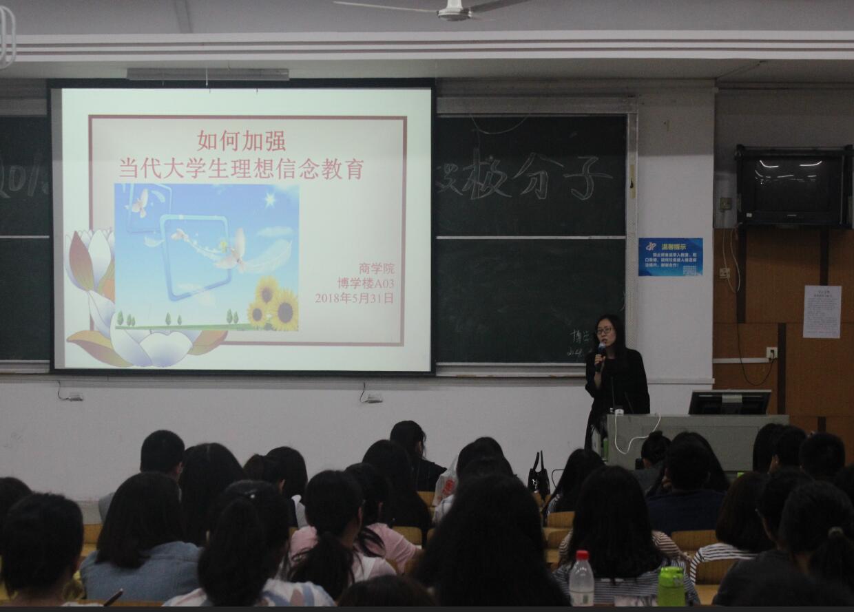 2018年5月31日晚,结合学院党风廉政建设月有关活动安排,bwin中国官网党总支副书记余晚霞在博学楼A03给全体入党积极分子和学生干部讲授了一场理想信念方面的党课。