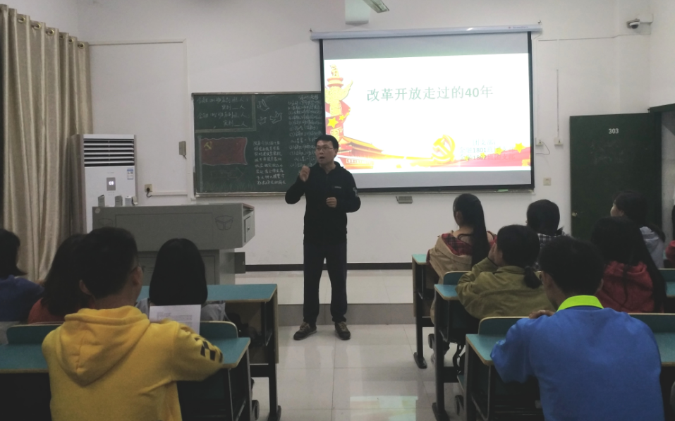 团会以班级为单位展开,内容丰富,形式多样。同学们通过观看《厉害了,我的国》等视频切实感知到了改革开放的光辉历程,通过参与知识竞答更加全面掌握了改革开放的相关知识,通过朗诵诗词激发了大家的爱国热情。团会过程中同学们配合默契、气氛活跃、纪律严谨。黄杰老师在参加金融1801、金融1802班团会时强调,新时代的大学生要谨记习近平总书记的教导,要肩负“不负人民重托,无愧历史选择”的使命,要增强思想道德素质和科学文化素养,把自己的人生价值与中华民族伟大复兴中国梦的实现紧密结合起来。