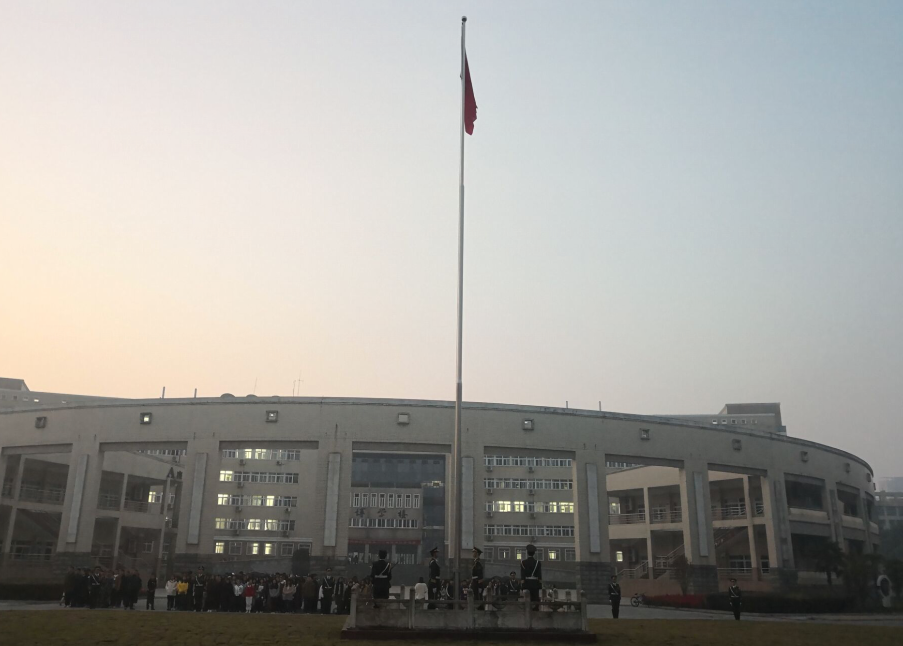 11月26日清晨六点半,伴随着冉冉升起的太阳,bwin中国官网在南区博学楼前举行了庄严的升旗仪式。院团委书记黄杰,团委副书记高可欣,学生会副主席殷晓茹、唐骄及全体大一新生参加了活动。