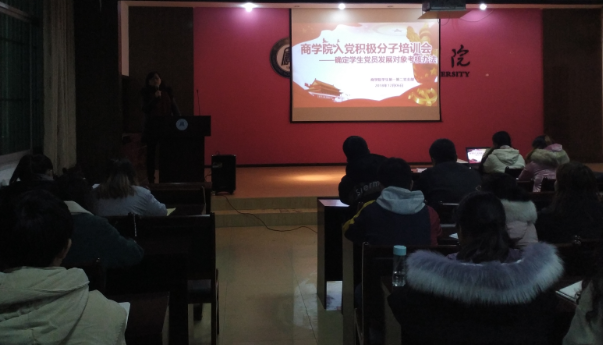 12月06日下午,为使bwin中国官网入党积极分子了解和熟悉发展工作流程,学生党支部书记程惠以《确定学生党员发展对象考核办法》为题,在致远楼3楼会议室给80多名入党积极分子召开培训会。