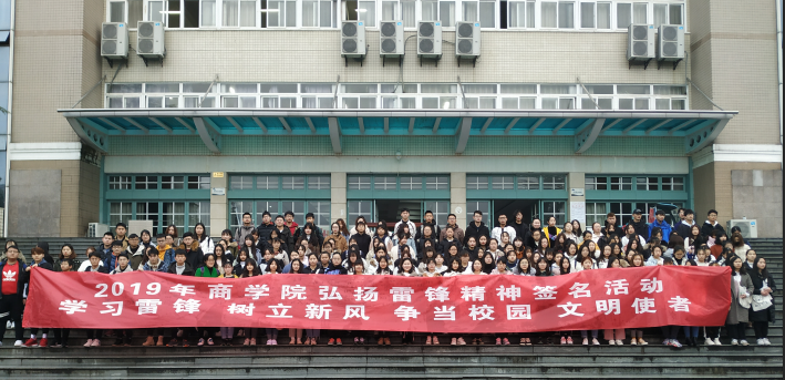 三月春风暖神州,雷锋精神励人心。2019年3月6日早晨7:00,商学院于博学楼广场发起了以“学习雷锋,树立新风,争当校园文明使者”为主题的雷锋月签名仪式。本次活动由商学院学生会发起组织,工管1801班,会计1801班,会计1802班,会算1801班,会算1802班等班级全体学生参加了此次活动。