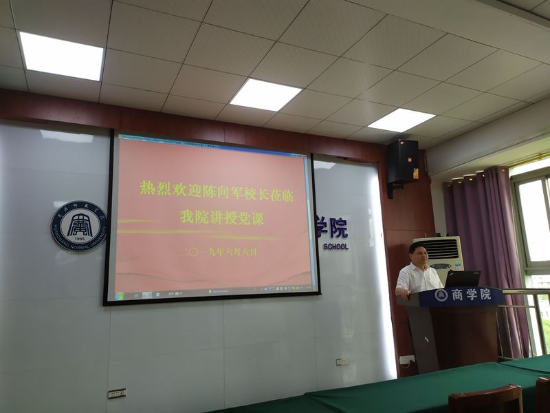 (通讯员 李享)为加强党风廉政建设宣传教育活动,6月6日下午,校党委副书记、校长陈向军同志在致远楼704会议室为商学院党员师生讲授一堂题为《践行好干部、好老师的标准,崇廉尚洁助力申硕攻坚》的专题党课。