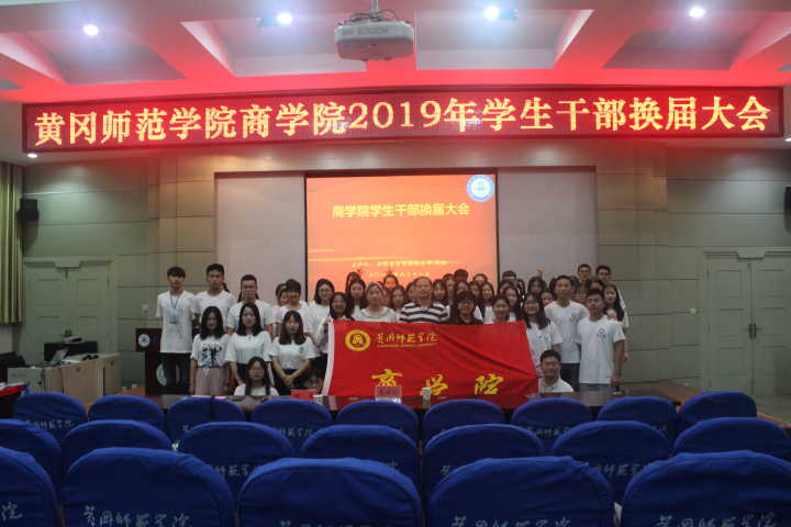 2019年6月18日晚19:00,商学院学生会2019年学生干部换届大会在博学楼B03学术报告厅隆重举行。党委副书记袁建明老师、学生第一党支部书记程惠老师、全体学生会成员、党总支成员及社团联合会、主持队、舞蹈队、礼仪队、辩论队、排球队、羽毛球队、篮球队、足球队、微信运营组代表参加了此次大会。