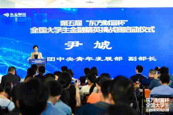 2019年4月,由共青团中央青年发展部主办的第五届“东方财富杯”全国大学生金融精英挑战赛报名启动,在启动仪式上,团中央青年发展部副部长尹虓对此次比赛提出要进一步强化实践育人功能着力提升大学生金融安全知识和金融实践能力,希望高校团委要将大赛作为共青团为党育人的重要平台,纳入共青团“第二课堂成绩单”制度的管理范畴。