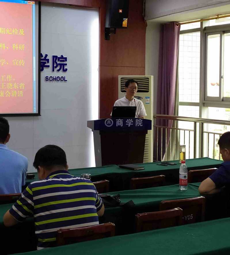 商学院党委书记鲍宏礼最后总结发言,同时全面传达了王晓东省长对我校的重要批示及8月27日校务虚会上王立兵书记的发言,并要求全院教师在会后继续深入学习领悟批示内容及会议讲话精神。
