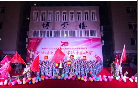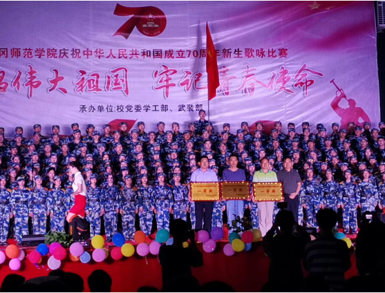 “歌唱伟大祖国,牢记青春使命”——黄冈师范学院2019年军训歌咏比赛于9月17日晚19:00在博学楼前广场上隆重举行。商学院19级153名新生代表队参加了此次比赛。经过激烈的紧张角逐,商学院代表队演唱的一曲《走向复兴》脱颖而出,最终获得了本次学校军歌大赛的一等奖。