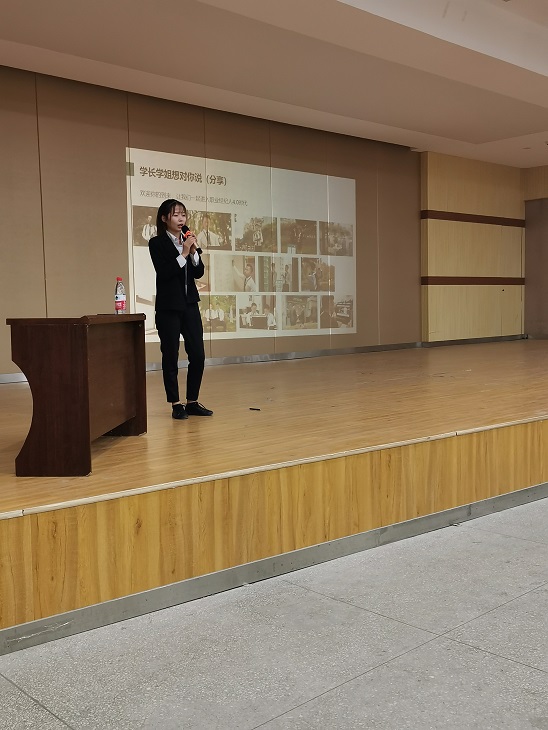 首先商学院经济与金融金融专业2015级毕业生梁咏娴对在线教育行业的发展动向以及大学生创业注意事项作了交流。 同时她提出,我校作为百年学府,历史底蕴深厚,师范学子综合素质高,有便于双方搭建合作交流平台。