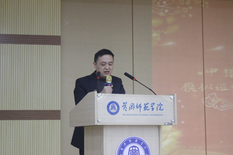 本次大会由团委书记侯晓文老师主持。大会伊始,中国银行黄冈分行黄健副行长致辞。他对bwin中国官网全体师生积极配合参与模拟炒股比赛表示了衷心感谢,并对此次获奖的同学表示了热烈祝贺,同时他希望商院学子加强自身素养、学以致用、提前适应金融环境,也欢迎各位学子毕业后进入分行工作,加强中行与商院的联系。