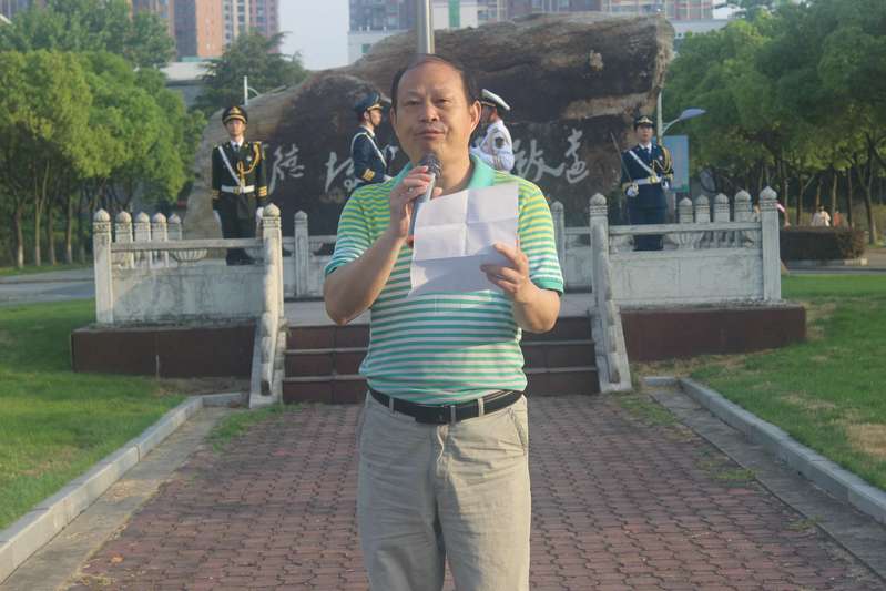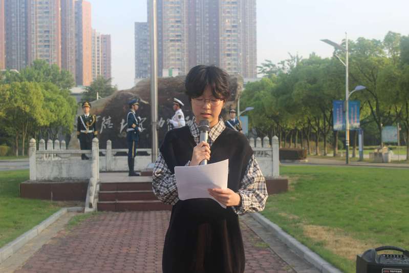 迎着朝阳,护旗手昂首挺胸、精神抖擞,迈着铿锵有力的步伐,护送国旗行进至升旗台。在雄壮的国歌声中,鲜艳的五星红旗冉冉升起,参加仪式的全体大一学生唱着国歌向国旗行注目礼,嘹亮的国歌响彻了整个校园,也点燃了到场所有人的爱国情怀。升旗仪式过后,来自工管2002班的谢坤作为学生代表,发表了以《回眸党史,感恩今天》为主题的演讲。她回首了中国共产党100年来的光荣发展历程,有风雨,也有辉煌光明。她展望了将由青年们带领的明亮未来,号召全体大一学生从现在开始打好本领、奋发图强,将时代的使命牢记于心,为建设美好中国出一份力,发一份光。接着,党委副书记袁建明老师发表讲话,他回顾了五四运动中革命先烈们抛头颅、洒热血的英勇壮举,并希望生逢盛世的青年一代能够坚定理想信念,争做时代的弄潮儿。演讲完毕后,全体大一学生将牢记使命召唤,不负前辈的期待,成为往后岁月里的后浪,勇立潮头。