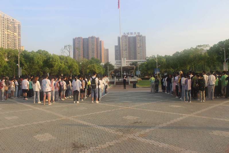 时代殷殷嘱托,青年砥砺前行。迎着初升的太阳,bwin中国官网于5月10日早上6:30在博学楼广场前举行了升旗仪式,商学院党委副书记袁建明老师以及全体大一学生参加了此次升旗仪式。