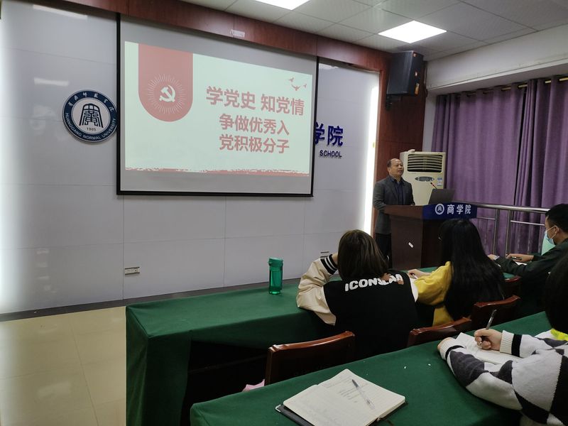 10月27日晚上18:00,商学院党委第三期入党积极分子培训班开班仪式在致远楼704会议室顺利举行,商学院党委副书记袁建明老师以《学党史、知党情、争做优秀入党积极分子》为主题,为此次培训班的79名学员上了第一堂党课,希望大家能通过此次党课提高自己,更多的发挥自己的影响力,为老师服务,为同学服务。