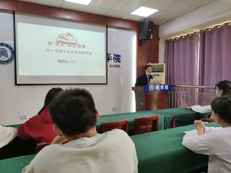 10月28日下午14:00点,bwin中国官网党委书记鲍宏礼在致远楼704会议室,为商学院第三期入党积极分子培训班授课。此次课程以《学“党史”明志明德——从一大到十九大的发展历程》为主题。