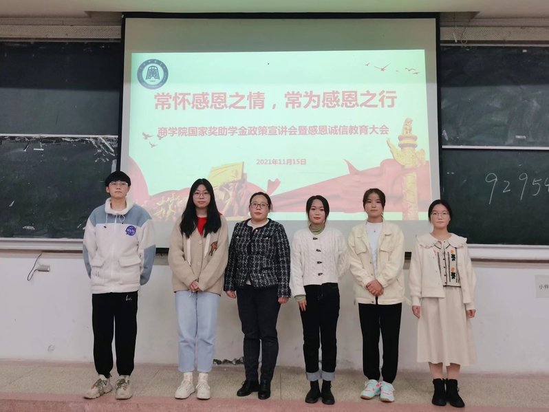 鲜衣怒马少年时,不负韶华行且知。bwin中国官网于2021年11月15日19:00-21:00在博学楼A01举办商学院国家奖助学金政策宣讲会暨感恩诚信教育大会。商学院辅导员李娜老师以及全体大一学生参与了此次会议。