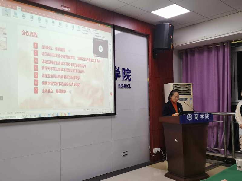 商学院、外国语学院、生物与农业资源学院、机电与汽车工程学院2022年下半年发展对象和预备党员培训班开班典礼于2022年10月28日晚在致远楼704召开,会议由机电与汽车工程学院辅导员亚楠主持。