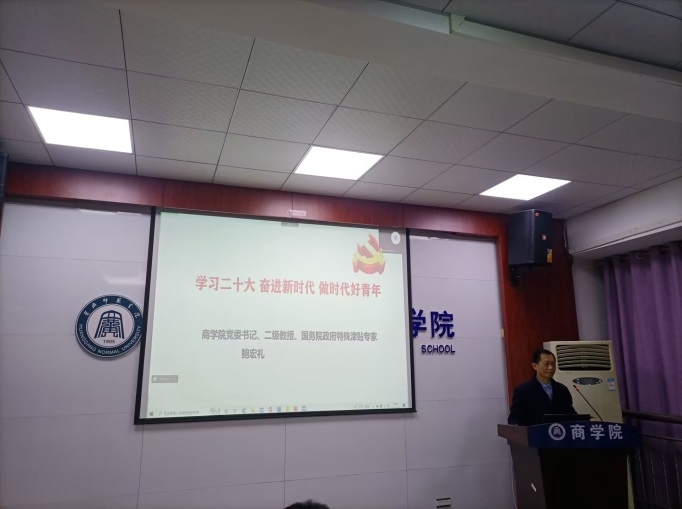 开幕式由商学院党委书记鲍宏礼作动员讲话。他向在座各位学员提出了四个方面的要求:一是希望培训班的同学认真学习二十大,以二十大精神武装自己的头脑;二是通过培训学习全面提升自己,做同学们的榜样标杆;三是要遵守培训班的纪律及培训要求,完满完成各项培训内容;四是希望同学们按照习近平总书记要求坚定不移听党话、跟党走,做新时代好青年。