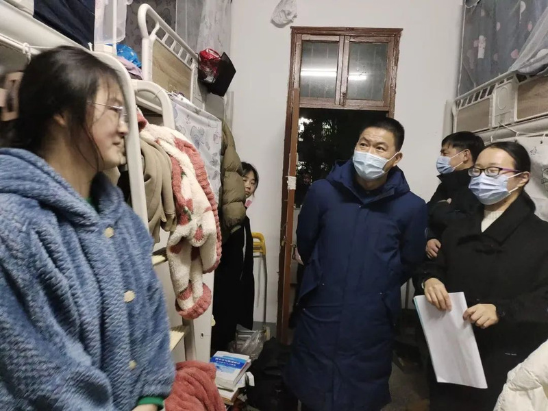 在看望学生过程中,刘院长详细地询问了各间宿舍里学生的住宿生活及学习情况,强调学子应尊重学校疫情防控要求,注重个人卫生,保护好人身财产安全和宿舍安全,注意御寒保暖,希望我们能够在返校后迅速调整好自己的状态,上好新学期第一课,将学校看作自己的第二个家,规划好学习计划,努力成人成才,奋力向前。