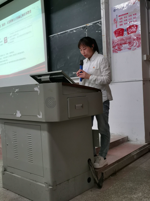 何秀平老师为大家讲解大学生党员发展相关知识,旨在使同学们充分了解到入党申请相关流程、条件、政策,阐述了入党积极分子的确定和培养教育,进一步加强商学院党员队伍建设,落实党支部发展党员工作计划,吸引更多入党积极分子向党组织靠拢。