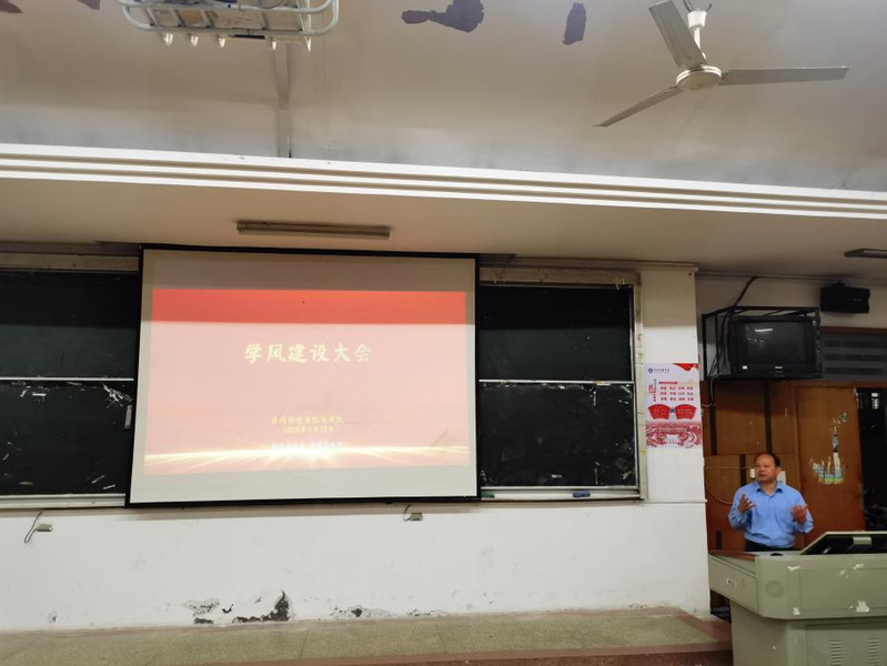 2023年4月12日晚七时,商学院学风建设大会在博学楼A01召开,此次会议重点围绕大学生专业竞赛介绍,学籍学位,党员发展,学风建设教育四个方面内容展开。党委副书记袁建明、院长助理马迎霜出席此次会议,专任教师、辅导员及全体大一学生参加会议。