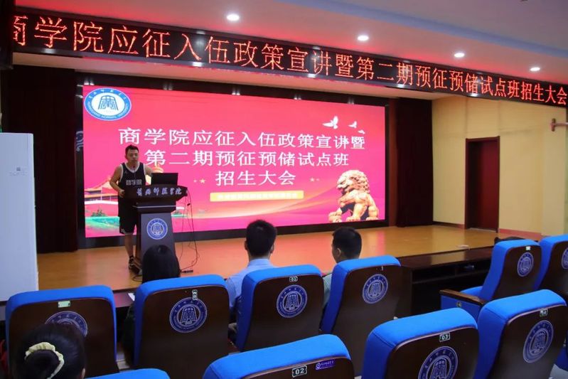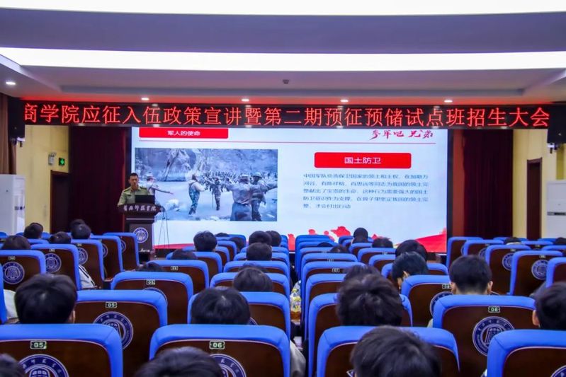 为积极响应国家号召,贯彻落实征兵宣传政策,进一步加强大学生征兵入伍宣传工作,鼓励和引导大学生积极应征入伍,商学院团委于2023年11月06日周一晚7时在致远楼三楼报告厅举办应征入伍政策宣讲暨第二期预征预储试点班招生大会。本次宣讲会由团委书记桂海钦老师主持,兼职辅导员王倩、彭佳威,22、23级学生参加了宣讲会。
