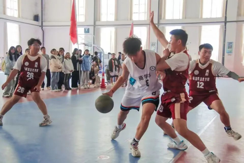 2023年11月14日中午,商学院与马克思主义学院在南区体育馆中心副馆如期举办“黄师杯”男子小组篮球赛,比赛最终以39:27的胜利结束。