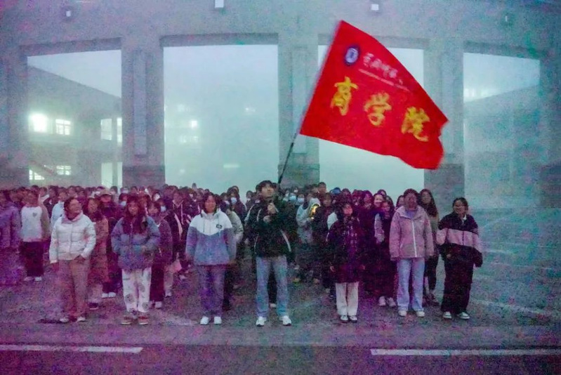 2023年11月27日6:30,bwin中国官网,biwn必赢网址升旗仪式在博学楼前举行,商学院2023级全体本科生和辅导员老师李蝶参加了本次升旗仪式。