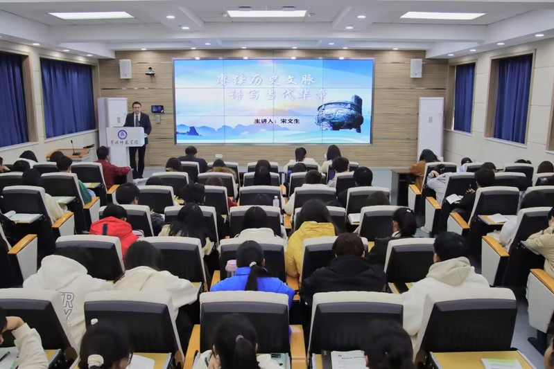 11月28日下午两点,党委常委、副校长宋文生以《赓续历史文脉,谱写当代华章》为题,在求实楼308为商学院金融和物流专业2023级同学讲授思政课。