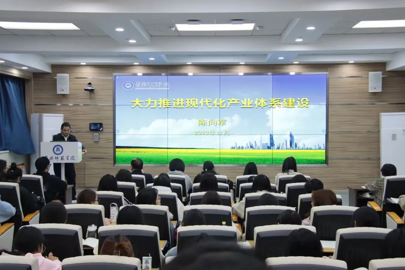 产业是经济之本,产业竞争已成为大国竞争的主战场,加快建设以实体经济为支撑的现代化产业体系,是中国经济高质量发展的重要任务和关键路径。陈向军阐述了现代化产业体系的深刻意蕴。坚持以实体经济为重,推进产业智能化、绿色化、融合化,建设具有完整性、先进性、安全性的现代化产业体系。随后,介绍了现代化产业体系建设的现状与挑战。我国产业发展取得历史性成就,但还存在结构性供需失衡、质量效益不高、核心竞争力不强等突出问题。最后,明确提出了推进现代化产业体系建设的着力点。坚持系统观念,坚持辩证思维,统筹建设现代化的工业、农业、服务业和基础设施,在“促转型、扬优势、增动力、补短板、强协同”五方面持续发力。陈向军通过全面阐释现代化产业体系的整体布局、重大意义、建设现状、主要举措,让学生深刻认识到加快现代化产业体系建设是时代所需、发展所需,是我国构筑未来发展战略优势的重要支撑。