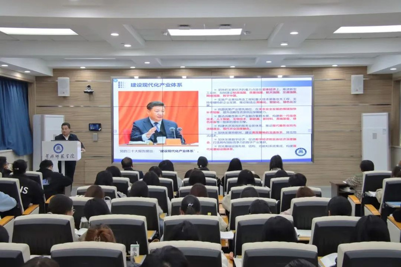 11月29日下午两点,校党委书记陈向军以《大力推进现代化产业体系建设》为题,在求实楼308教室为商学院工商和国贸专业2023级同学讲授思政课。