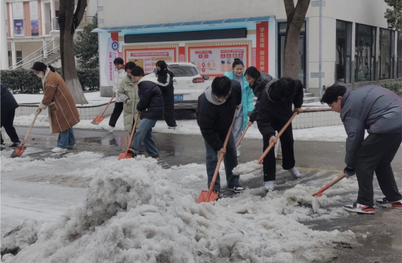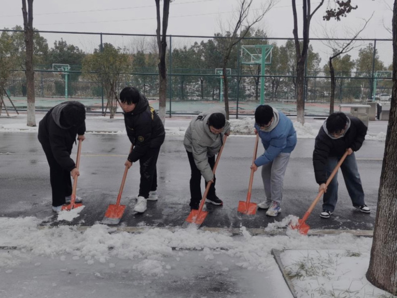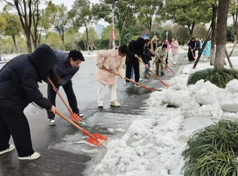 商院学生积极响应号召,由自扫门前雪,逐步演变为共同扫雪,撬冰、铲雪,以动解“冻”,清雪机械与人工齐心协作,开辟一条条“安全路”、“暖心路”,共铸校园畅通之道,展现团结合作之美。
