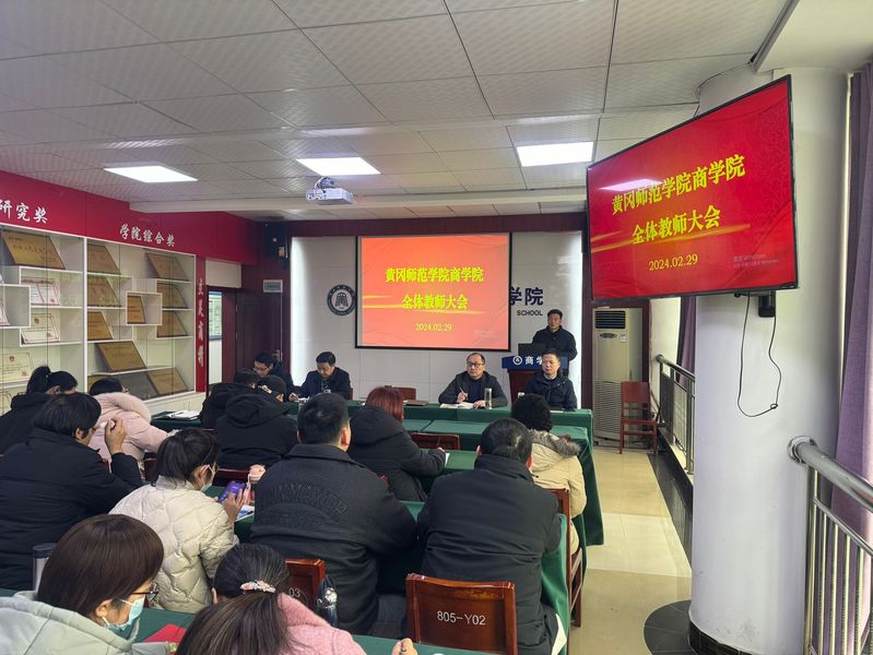 2024年2月29日,商学院在致远楼704召开2024年春季学期教职工大会。会议由学院党委书记刘汉成主持,全院教职工参加了会议。