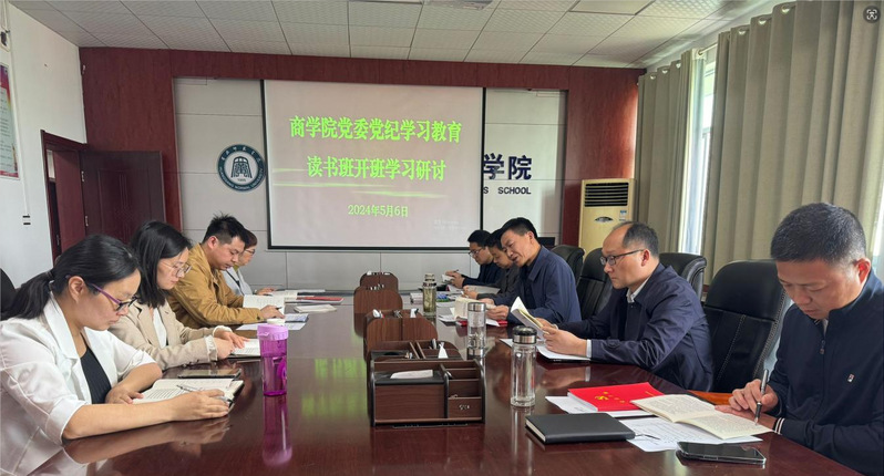 为更好落实党纪学习教育实施方案,确保学习教育走深走实,5月6日上午,商学院党委在致远楼719会议室举行党纪学习教育读书班集中学习暨研讨交流会。全体班子成员以及支部书记参加会议。