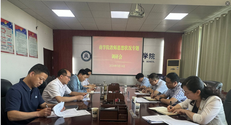 5月14日上午8点30,学校党委常委、副校长宋文生带队来bwin中国官网调研教师思想状况及人才工作, 人事处处长徐峰、人事处副处长于晶、人才办主任朱泽民,商学院领导班子、教研室主任及博士代表参加调研座谈。