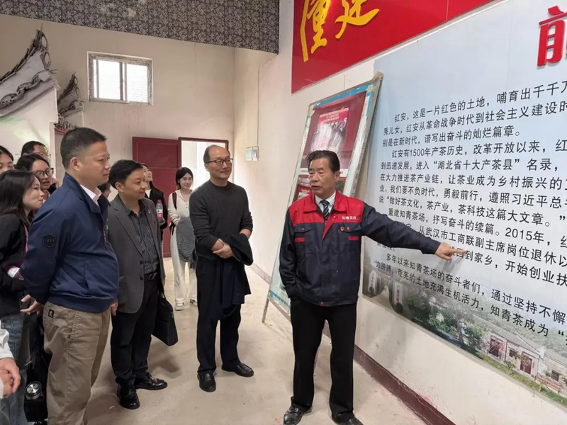 下午,大家来到红安知青茶场,在我校校友、知青茶场党支部书记杨敬宇陪同下先后参观了知青茶园、菜园、动物园和农耕文化馆、知青展览馆、蜜蜂科普馆,品尝了现做的豆腐脑,大家充分感受到浸润着奋斗气息的这片红色土地带给人们的喜悦和激情。