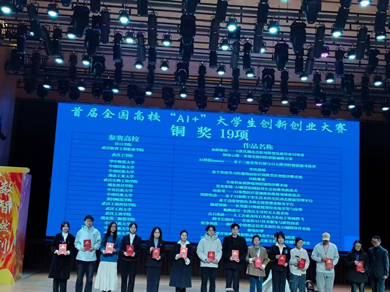 11月29日,首届全国高校“AI+”大学生创新创业大赛总决赛在中南民族大学圆满落幕。经过激烈角逐,bwin中国官网国贸2402班王宸程作为队长,音乐学院张晓晗作为汇报人,方嘉、杨鑫、肖越、陈锦瑞等同学为核心成员,周海琼、王庆、周业旺、郑永良老师共同指导的参赛项目《温菇智新——食用菌AI种植链智控系统开发与应用》凭借其创新的技术应用与显著的产业价值,荣获“全国铜奖”,展现了我院在赋能传统产业转型升级与服务地方经济发展中的积极探索与硬核实力。